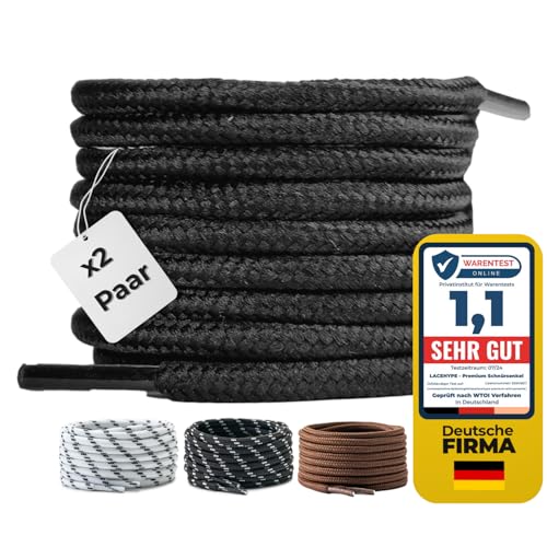 2 Paar – Premium Runde Schnürsenkel [ Ø4,5 mm ] Polyester für Arbeitsschuhe, Stiefel, Outdoorschuhe und Sportschuhe reißfeste Schuhbänder
