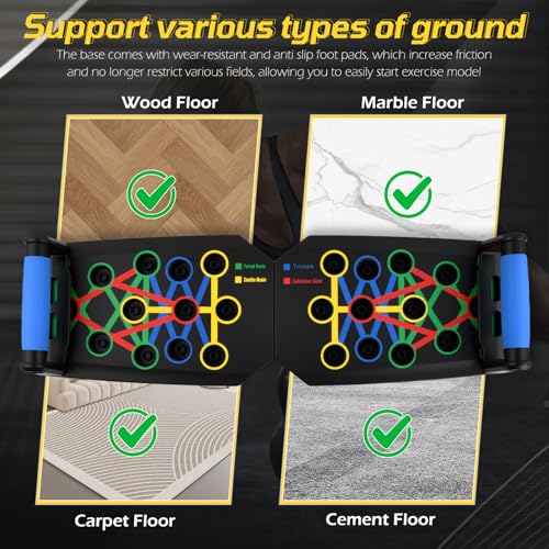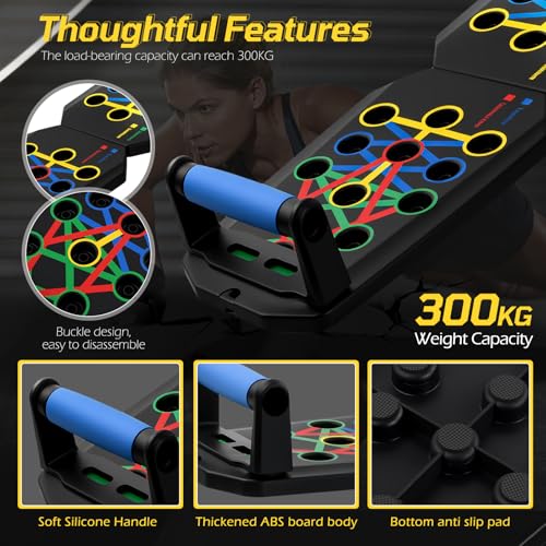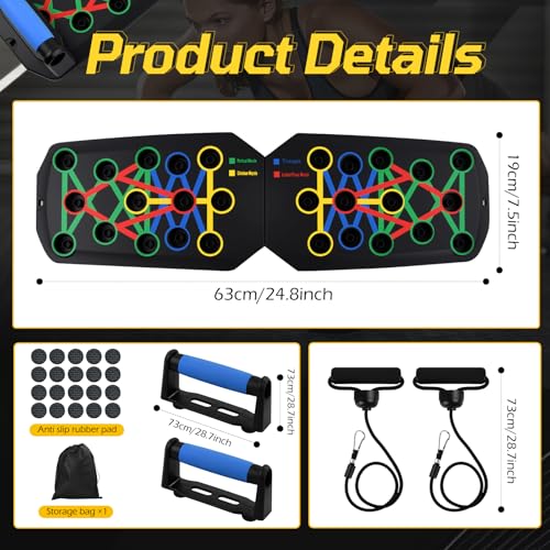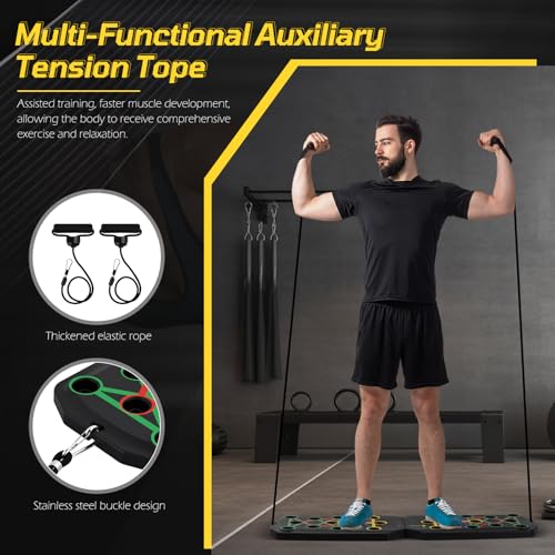 Details: 24 in 1 Liegestützbrett, Push Up Board mit Liegestützgriffe, 2 Spannseil, 20 Klebepads, Tasche, Liegestütze Brett, Parallettes Tragfähigkeit 150kg, Fitnessgeräte Trainingsgeräte für Zuhause