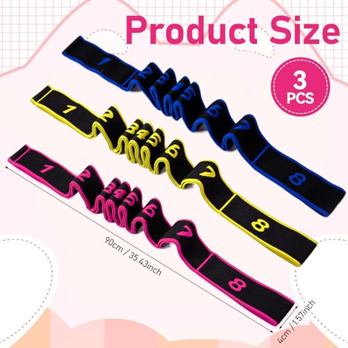 Details: 3 Stück Yoga Stretch Gurt, Dehnungsband, Yoga Stretching Band, Fitnessband mit 8 Schlaufen, Yogas Stretching Strap, Multi-Schleifen, für Fitness, Tanztraining, Pilates, Gymnastik, Effektives Dehnung