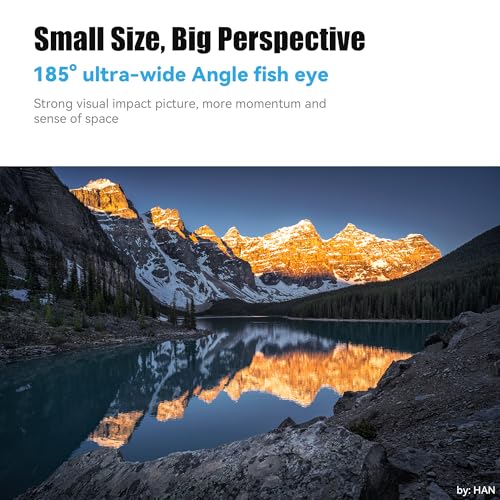 【Fisheye & Ultra Wide-Angle】: Mit einem großen Sichtfeld von 185° verleiht es dem Bild einen starken visuellen Eindruck auf dem Bildschirm und ermöglicht weite Landschaften bei der Aufnahme. Das Fisheye-Design reduziert interne Reflexionen wie überlagerte Schatten und Geisterbilder, um die Bildqualität zu erhalten
