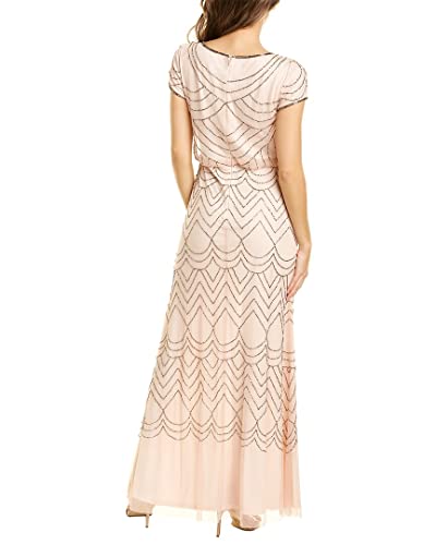 Adrianna Papell Womens Short Sleeve Blouson Beaded Gown