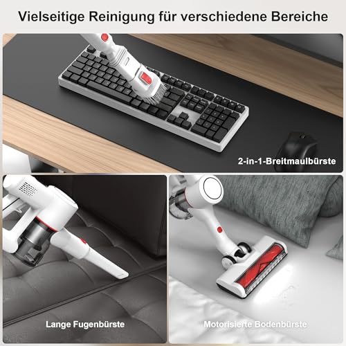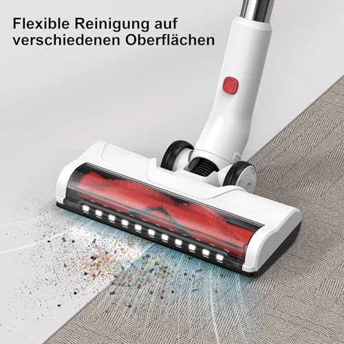 Details: Akku Staubsauger Kabellos Vacuum Cleaner – 3-In-1 Akkustaubsauger Kabelloser Weiß Akkusauger Cordless mit Licht Stabstaubsauger ohne Kabel mit Display für Tierhaare Teppiche Hartböden Auto