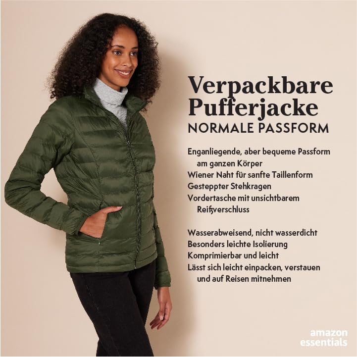 Amazon Essentials Damen Leichte Steppjacke Wasserabweisend Packbare Daunenjacke für Übergang