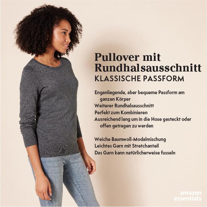 Details: Amazon Essentials Damen Leichter, Langärmeliger Pullover Mit Rundhalsausschnitt (Erhältlich in Übergröße)