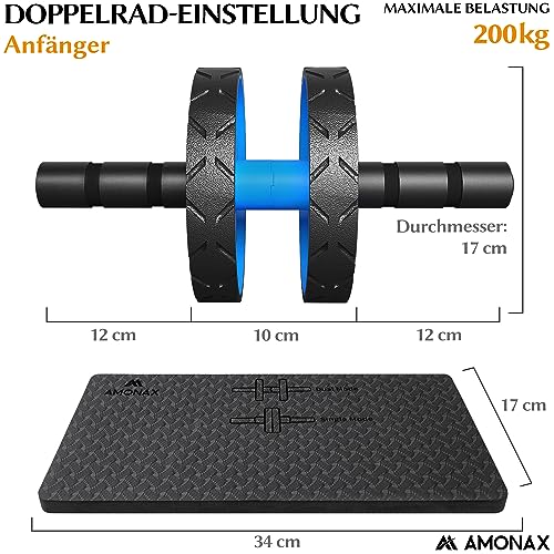 Amonax Bauchroller, bauchtrainer ab roller, bauchmuskeltrainer ab wheel set, mit Rutschfester, inkl. gut gepolsterter Kniematte/Knieauflage, für Männer und Frauen, Bauchmuskeltraining