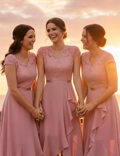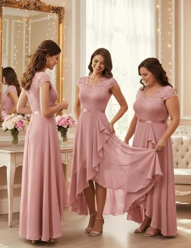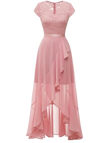 Bbonlinedress Abendkleider elegant für Hochzeit Spitzenkleid Chiffon Hi-Lo Kleid Brautjunferkleid Partykleid Abschlusskleid lang Ballkleid