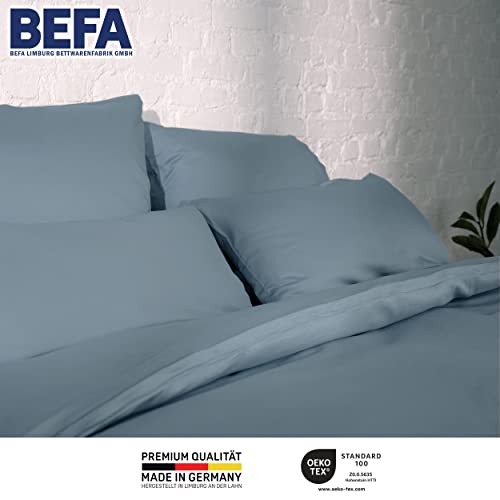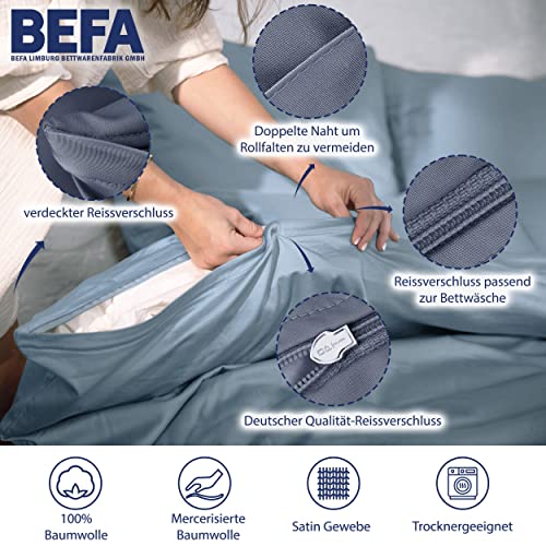 Details: BEFA NATUR Made in Germany Bettwäsche Set, Bettbezug 200×200 cm und 2 Kissenbezüg 80×80 cm aus Baumwolle-Satin, Allergiker geeignet, Öko-Text 100 Klasse 1 Zertifiziert – Marine