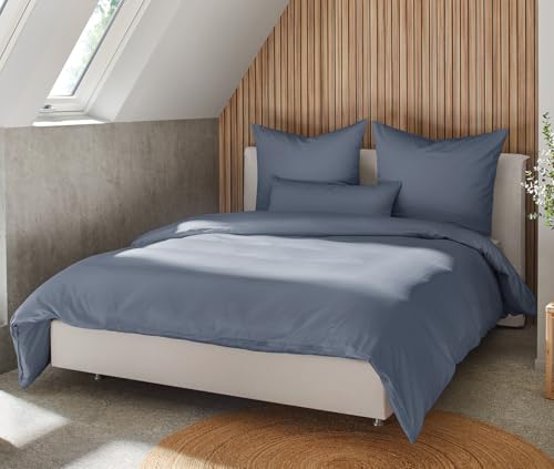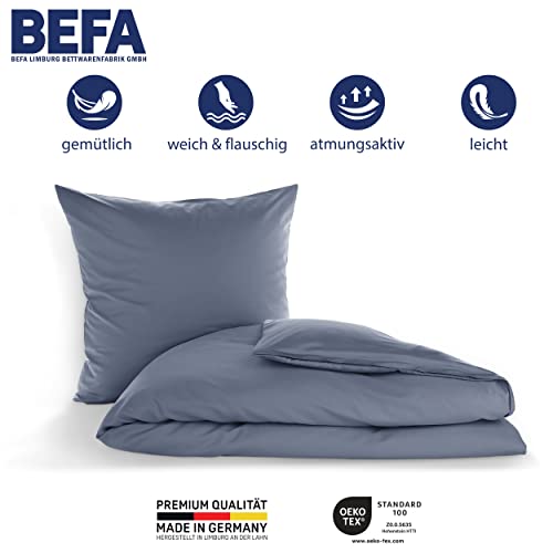 BEFA NATUR Made in Germany Bettwäsche Set, Bettbezug 200×200 cm und 2 Kissenbezüg 80×80 cm aus Baumwolle-Satin, Allergiker geeignet, Öko-Text 100 Klasse 1 Zertifiziert – Marine