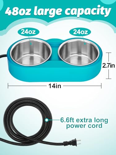 Details: Beheizter Wassernapf für Katzen – 1,4 l Outdoor Beheizter Haustier-Hundenapf mit 2 Edelstahlnäpfen, Thermostatische Kontrolle, um Wasser und Futter vor dem Einfrieren im Winter zu halten,