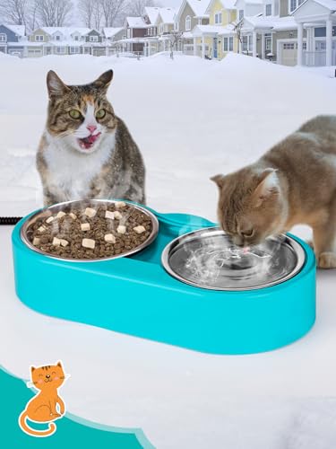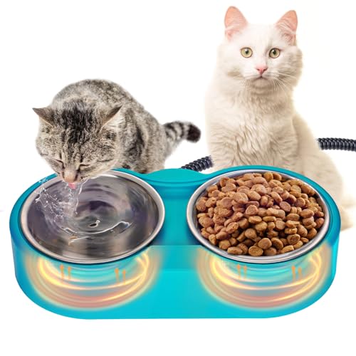 Beheizter Wassernapf für Katzen – 1,4 l Outdoor Beheizter Haustier-Hundenapf mit 2 Edelstahlnäpfen, Thermostatische Kontrolle, um Wasser und Futter vor dem Einfrieren im Winter zu halten,