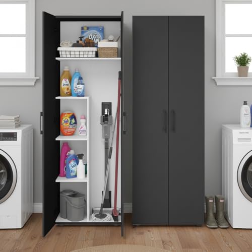 Bellamio Apol Besenschrank – Mehrzweckschrank in Anthrazitschwarz – Vorratsschrank mit Staubsaugerfach – Putzschrank aus Holz – Flurschrank mit Stauraum – Haushaltsschrank – Allzweckschrank 176x33x60