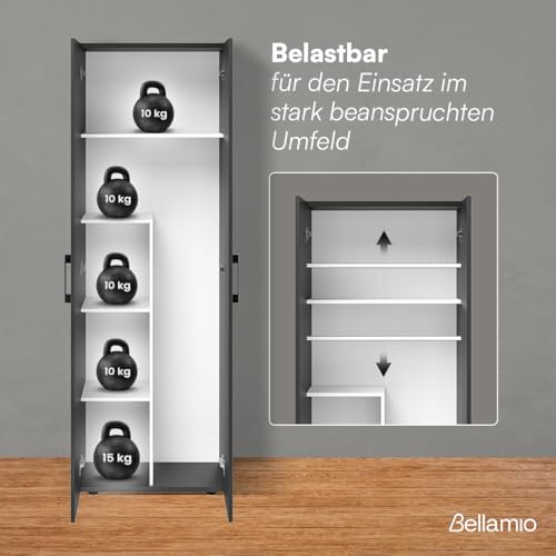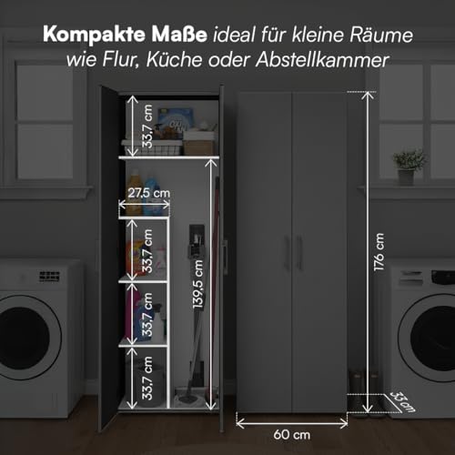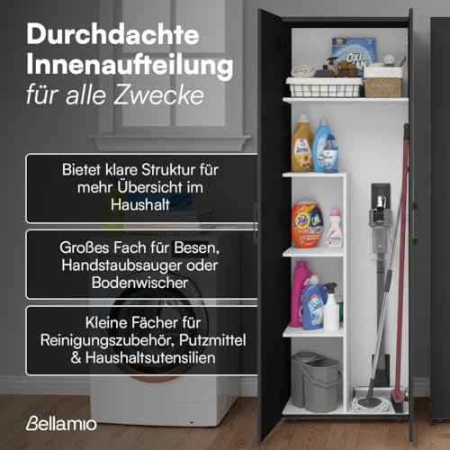 Details: Bellamio Apol Besenschrank – Mehrzweckschrank in Anthrazitschwarz – Vorratsschrank mit Staubsaugerfach – Putzschrank aus Holz – Flurschrank mit Stauraum – Haushaltsschrank – Allzweckschrank 176x33x60