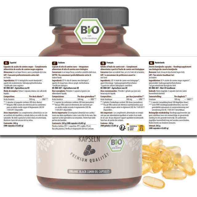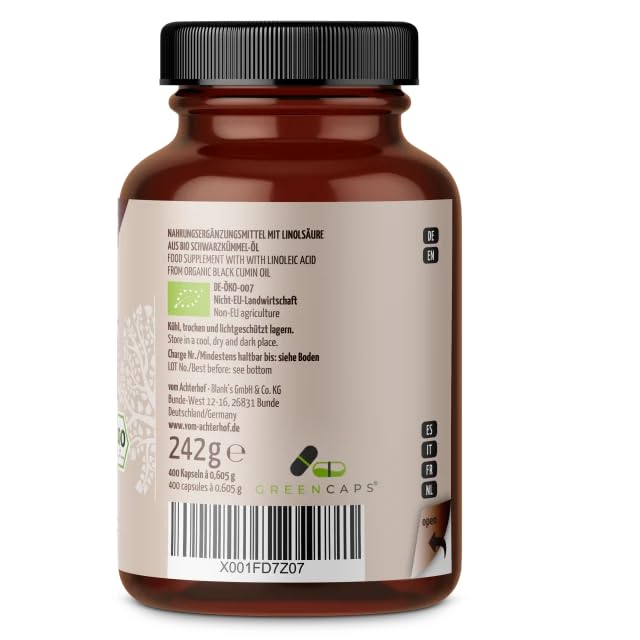Details: Bio Schwarzkümmel-Öl Kapseln 400 Stück | 1000mg pro Tagesdosis | naturbelassen und schonend kaltgepresst | vegan | höchste Bio-Qualität | vom Achterhof
