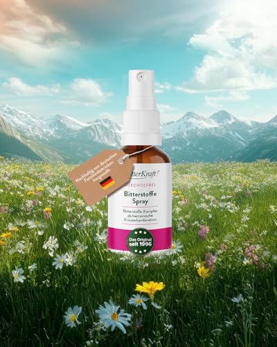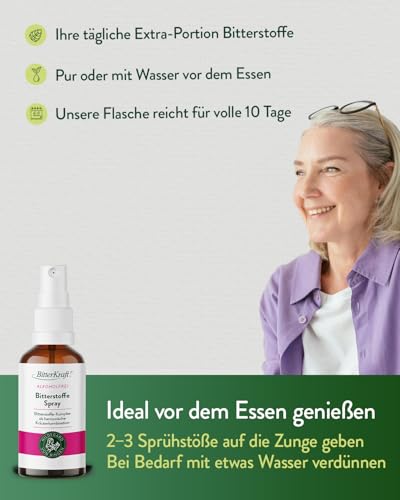 ✅ BITTERKRAFT! ALKOHOLFREI SPRAY: Die Rezeptur enthält 9 ausgesuchte Kräuter – darunter Angelikawurzel, Enzian, Kardamom, Ingwer, Kurkuma und Artischocke – für natürliche Bitterkraft.