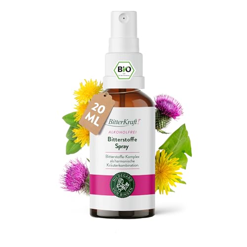 Details: BitterKraft! Original BIO Bittertropfen alkoholfrei 20 ml Spray- nach Hildegard von Bingen – 9 erlesene Bitterkräuter – Verdauungsfördernd – hochdosiert – 100% Natur – Vegan – Made in Germany