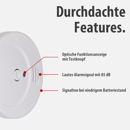 Rauchmelder mit austauschbarer 9V Block-Batterie – Batterielebensdauer mind. 1 Jahr