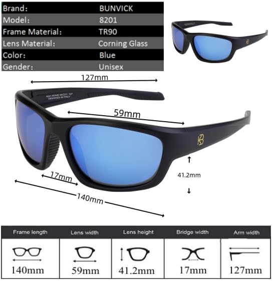 Details: BUNVICK Polarisierte Hochleistungs-Sonnenbrillen aus Echtem Glas für Männer und Frauen, italienisches Design, Anti-Glare, UV400, Corning Echtes Glas Linsen