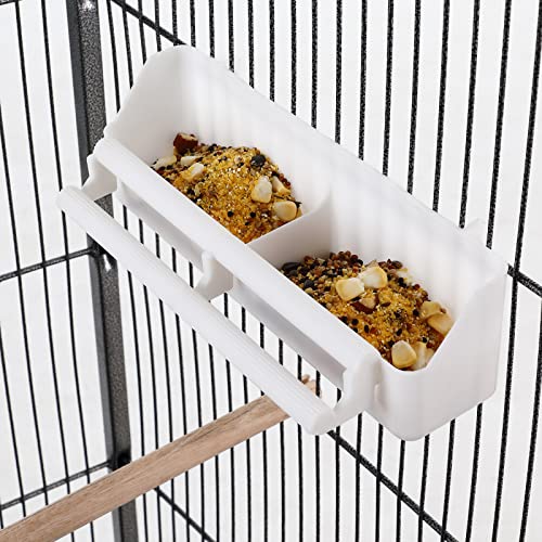 AUSSTATTUNG – Der Vogelbauer besitzt viele Extras. Dies beinhaltet 4 Sitzstangen aus Holz, die individuell im Käfig angebracht werden können, eine große geteilte Futterstelle mit Sitzstange sowie einen Wasserspender.