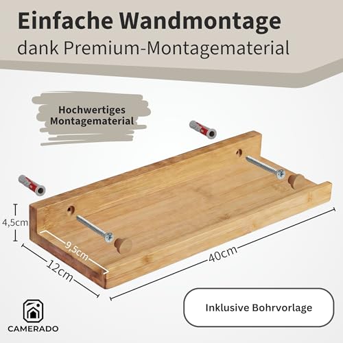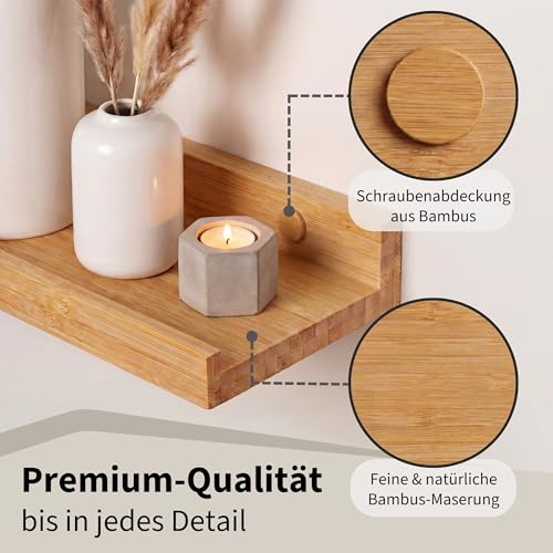 Details: Camerado 2er Set Bilderleiste Bambus 40cm – Wandregal Holz inkl. Schraubenabdeckung