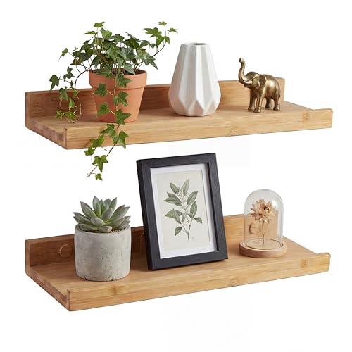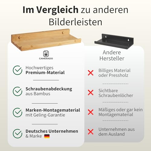 Camerado 2er Set Bilderleiste Bambus 40cm – Wandregal Holz inkl. Schraubenabdeckung