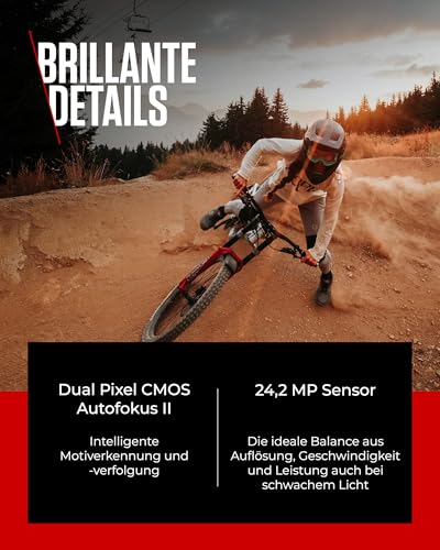 VOLLFORMATQUALITÄT – Die kompakte Systemkamera bietet dank des Dual Pixel CMOS AF II Sensors mit künstlicher Intelligenz und 24,2 Megapixeln alle Vorteile des Vollformats. Aufzeichnung von 4K 60p UHD-Videos und 6K-RAW Aufnahmen möglich.