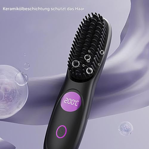 Details: Clinora Kurzhaar Pro, Stylingbürste Für Kurze Haare, Clinora Stylingbürste, Glättender Kamm Für Haare, Kabellos, 3 Modi, Touchscreen, Verstellbar, Styler Für Reisen, Volumen, Entwirrung, Damen