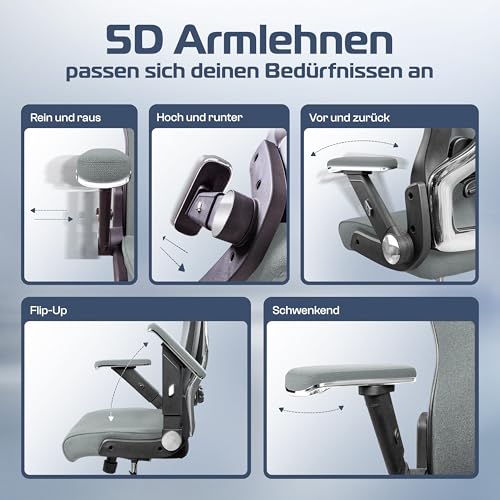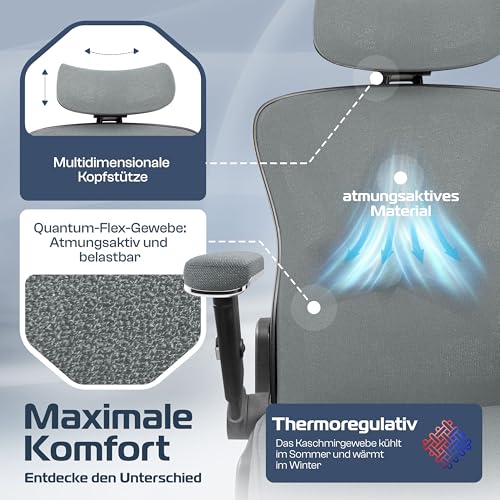 Details: CLOUVOU PowerSeat Bürostuhl Ergonomisch [TESTSIEGER] Schreibtischstuhl 100% individuell einstellbar | Büro Stuhl & Gaming Stuhl | Computerstuhl Home Office Chair Ergonomic | Drehstuhl 200 kg