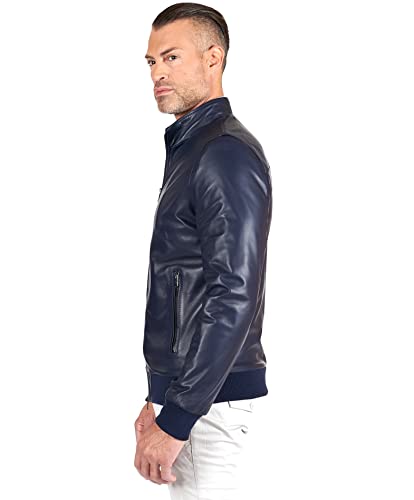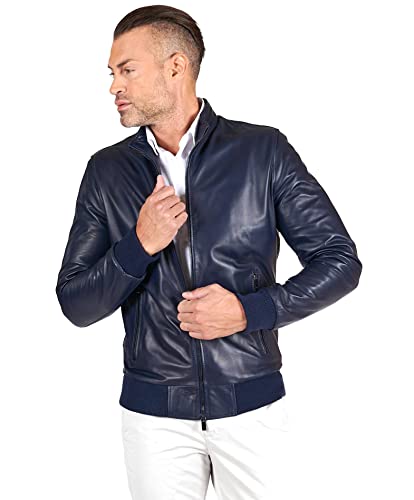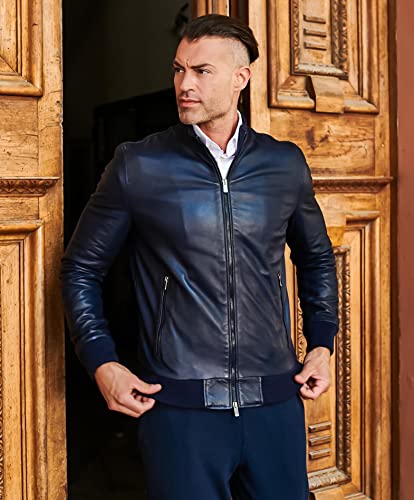 D’Arienzo Bomberjacke Lederjacke Blau Herren Jacke Echtleder Made in Italy 106