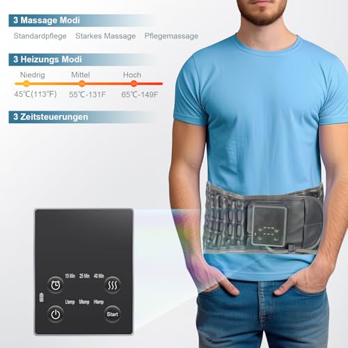 Dekompressions-Rückengürtel: Der Dekompressions-Rückengürtel verfügt über ein ergonomisches Design mit mehreren Luftsäulen, kombiniert Vibrationsmassage, heiße Kompression und Luftzug und bietet optimale Traktion und robuste Unterstützung bei stressbedingten Problemen im Lendenbereich. Er lindert effektiv Beschwerden im unteren Rückenbereich und bietet Linderung bei Wirbelsäulenproblemen, hilft, Muskeln zu entspannen, Verspannungen abzubauen und den Heilungsprozess nach Verletzungen zu beschleunigen.