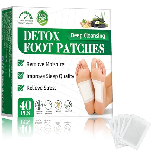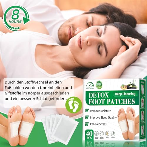 Detox Pflaster, 40 Stück, mit Bambuskohle, Entgiftungspflaster Füße zur Entspannung, zum Stressabbau und für tiefen Schlaf, Fuß-Detox-Pflaster zur Entfernung von Giftstoffen und zur Tiefenreinigung