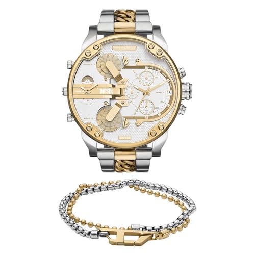 Diesel Herren Mr. Daddy 2.0 Uhr und D Logo Armband aus mehrfarbigem Edelstahl, Set