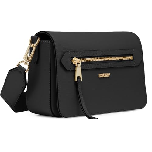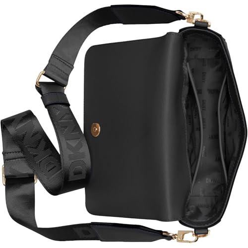 Details: DKNY,WOMEN’S,BRYANT AVE MD FLAP CROSSBODY, BLK/GOLD,1SZ