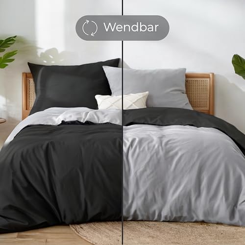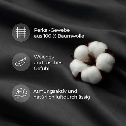 Details: Dreamzie Bettwäsche 135×200 Baumwolle 4-teilig – Bettwäsche-Sets mit 2 Kissenbezügen 80×80 – Wendebettwäsche mit Reißverschluss – Oeko-Tex Zertifiziert – Farbe: Dunkelgrau