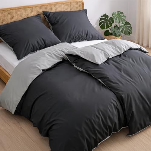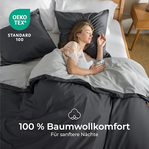 Dreamzie Bettwäsche 135×200 Baumwolle 4-teilig – Bettwäsche-Sets mit 2 Kissenbezügen 80×80 – Wendebettwäsche mit Reißverschluss – Oeko-Tex Zertifiziert – Farbe: Dunkelgrau