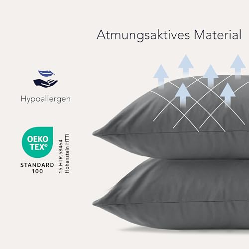 Details: Dreamzie Kissenbezug 40 x 80 (Set mit 2) – 100% Jersey Baumwolle 150 g/qm Kissenbezüge -Anthrazit – Für Kissen 40 x 80 cm – Kissenhülle – Kissenbezug – Resistent und Hypoallergen