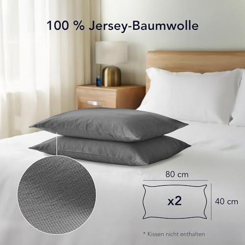 Dreamzie Kissenbezug 40 x 80 (Set mit 2) – 100% Jersey Baumwolle 150 g/qm Kissenbezüge -Anthrazit – Für Kissen 40 x 80 cm – Kissenhülle – Kissenbezug – Resistent und Hypoallergen