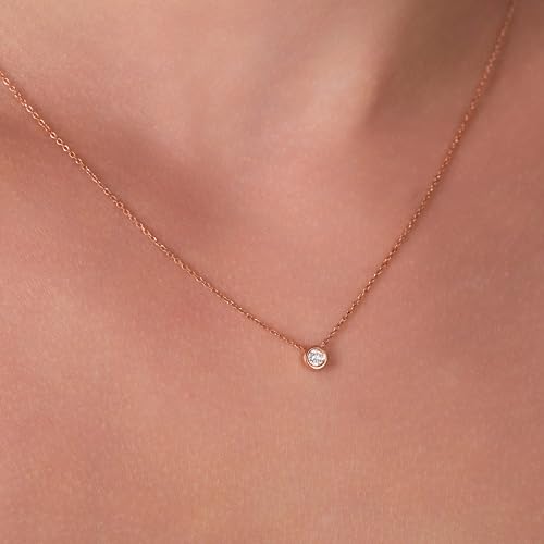 Ethos Jewelry 585 Echtgold 14K Massivgold Zierliche Diamant Halskette – Filigran, Verstellbar – Mit G-Farbe VS–SI Lab Grown Diamanten – Elegantes Geschenk für Damen