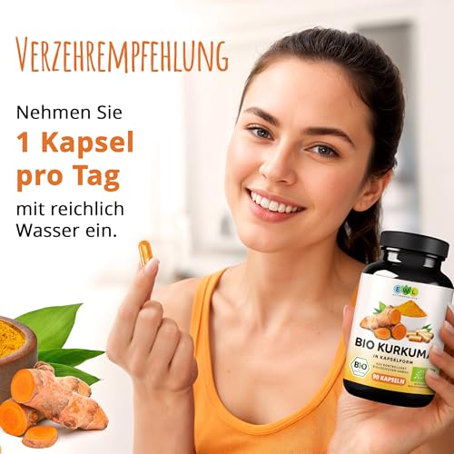 Details: EWL Naturprodukte Bio Kurkuma Kapseln, 90x 750mg Curcuma aus kontrolliert biologischem Anbau, vegane Kapseln