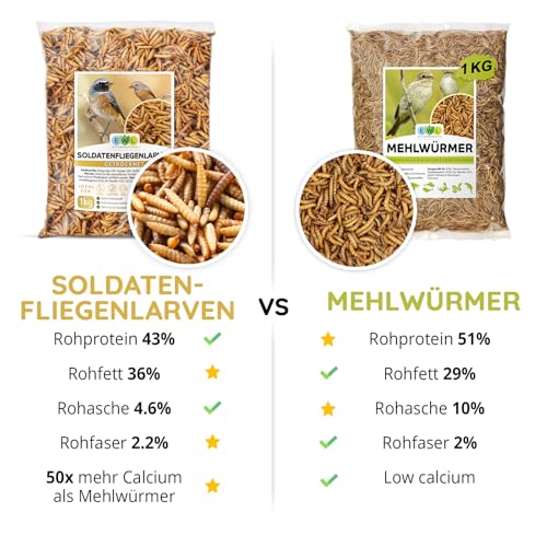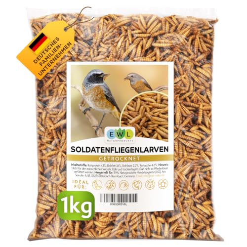 EWL Naturprodukte Soldatenfliegenlarven getrocknet, 1kg (6,5 Liter) Soldatenfliegenlarven, Vogelfutter, Fischfutter, Schildkrötenfutter, Igelfutter mit Insekten