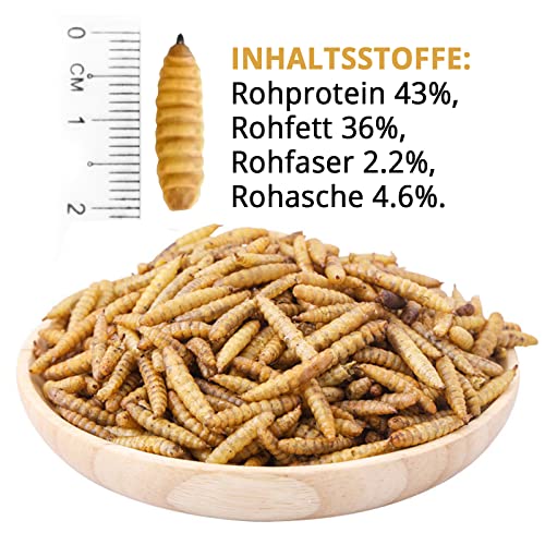 🐦QUALITÄT: Unsere Soldatenfliegenlarven werden besonders schonend getrocknet. Anschließend werden sie sorgfältig und bruchsicher verpackt.