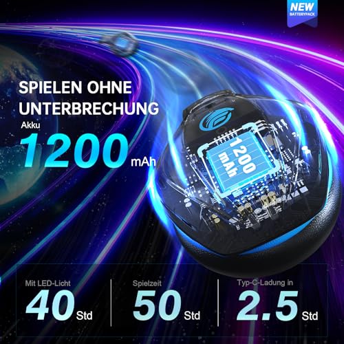 🌈 【Lange Akkulaufzeit mit dynamischer LED-Beleuchtung】Bis zu 50 Stunden Spielzeit ohne Beleuchtung oder 35 Stunden mit farbwechselnder LED-Beleuchtung. Volle Aufladung in nur 2,5 Stunden per USB-C. Aktivieren Sie per Knopfdruck die dynamische LED-Beleuchtung für ein beeindruckendes visuelles Erlebnis.