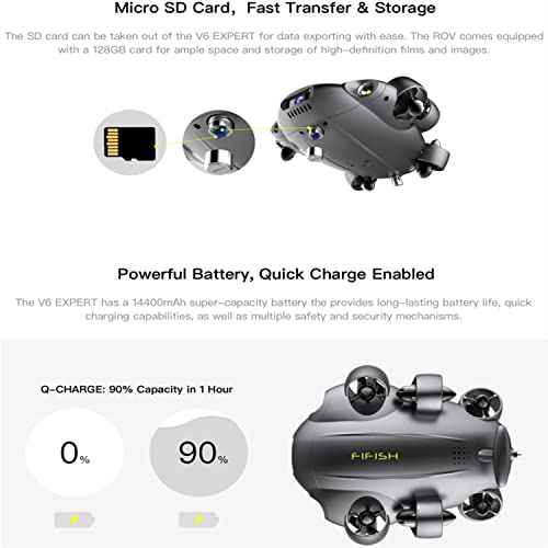 Micro SD Card,FastTransfer &Storage: The SD card can be taken out of the V6 EXPERT for data exporting with ease. The ROV comes equipped with a 128GB card for ample space and storage of high-definition films and images.