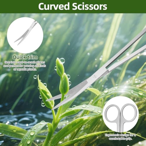 【HOCHWERTIGE MATERIALIEN】 Hergestellt aus hochwertigem Edelstahl. Glänzende Oberfläche, rostfrei und korrosionsbeständig. Langlebig und langlebig. Ausgezeichnete Flexibilität, verbiegt und verblasst nicht. Gestalten Sie wunderschöne Aquarienpflanzenlandschaften und ermöglichen Sie präzises Beschneiden, Umstellen, Pflegen, Reinigen, Stutzen und die Pflege von Wasserpflanzen.