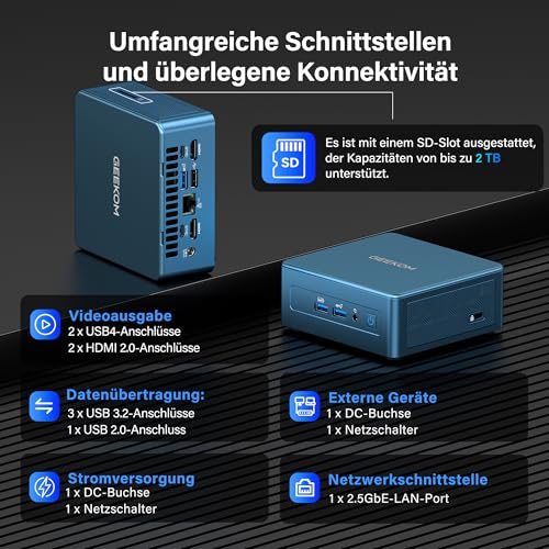 Details: GEEKOM Mini PC IT12 mit Intel i5-12450H(3-Jahren-Garantie), 16GB RAM & 512GB SSD(max. 96GB + 4TB) Windows 11 Pro, 8K Quad-Display | 2X USB 4.0 | SD-Kartensteckplatz, für Business/Büro