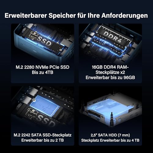 ✅Unterstützt bis zu 96GB RAM + 8TB SSD Speicherkapazität – Der GEEKOM IT12 mit 16GB DDR4 RAM(𝐄𝐬 𝐢𝐬𝐭 𝐞𝐫𝐰𝐞𝐢𝐭𝐞𝐫𝐛𝐚𝐫 𝐮𝐧𝐝 𝐡𝐚𝐧𝐝𝐞𝐥𝐭 𝐬𝐢𝐜𝐡 𝐧𝐢𝐜𝐡𝐭 𝐮𝐦 𝐋𝐏𝐃𝐃𝐑) (auf 96GB erweiterbar) sowie 512GB PCIe SSD (M.2 2280, erweiterbar auf 4TB) ausgestattet, zusätzlich verfügbar sind ein M.2 2242 SATA-Slot (bis zu 2 TB) und ein 2,5″-SATA-Slot (bis zu 2 TB)