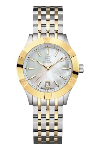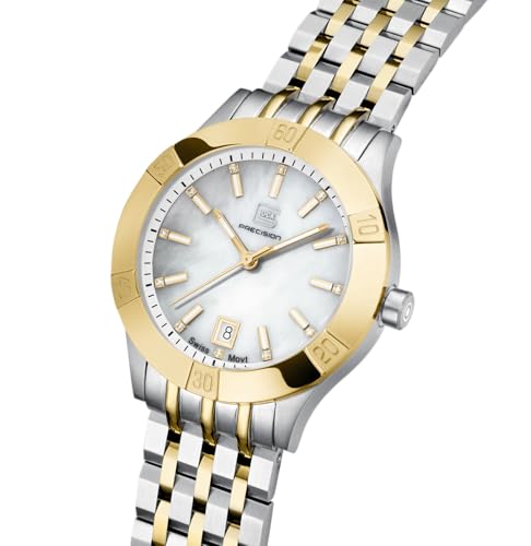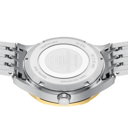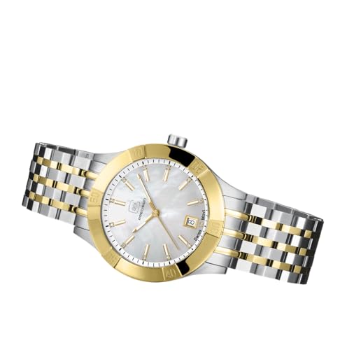 Details: GLOCK Damen Quarz Uhr | 36mm Gehäuse | Armbanduhr mit Silbernem Edelstahlgehäuse | Perlmutt Zifferblatt | Bicolor-Gliederarmband | 10ATM | GW-31-1-18