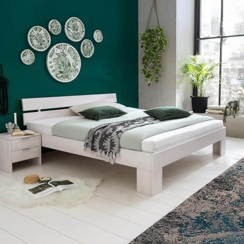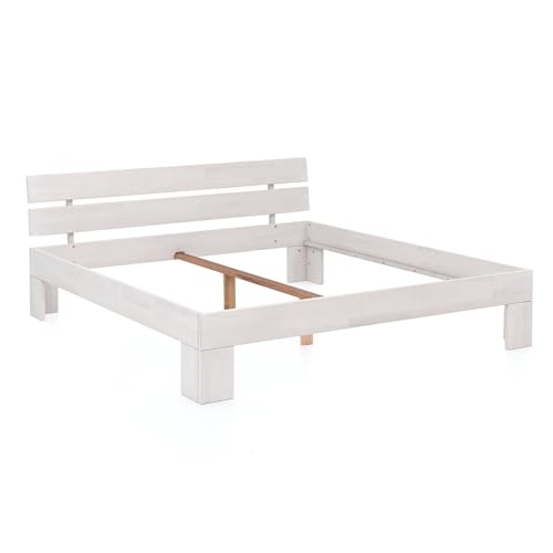 HOMELIV. Tanu Massivholzbett Doppelbett 180×200 cm Kernbuche weiß lackiert mit Kopfteil und Winkelfüßen, stabile Ausführung, Belastbarkeit: 160 kg, Bettgestell