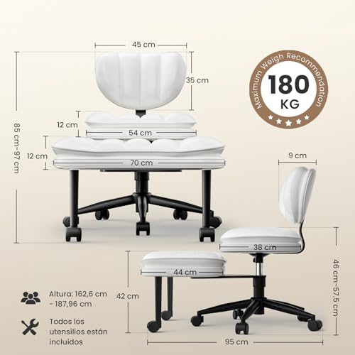 【Hochwertiges PU-Leder】: Gefertigt aus wasserabweisendem und fleckenresistentem PU-Leder, ist dieser drehbare Sessel für gekreuzte Beine weich im Griff und leicht zu reinigen. Er widersteht Flecken und Rissen, während die stabile Stahlbasis und langlebige Rollen eine lang anhaltende Nutzung gewährleisten.