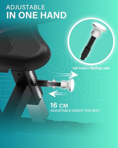 PERSONALISIERTE EINSTELLUNGEN – Der gepolsterte Sitz bietet fünf Höheneinstellungen (Gesamtverstellbereich: 18 cm) für Benutzer unterschiedlicher Körpergröße. Eine selbstrückstellende Federverriegelung verhindert versehentliches Lösen. Die hochdichte, verstärkte Polsterung reduziert die Muskelermüdung beim Training.