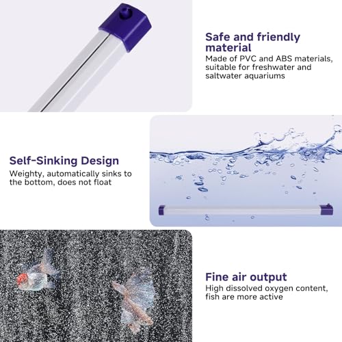 【Langlebiges und selbstsinkendes Design】 Der Aquarium-Bubbler besteht aus hochwertigen PVC- und ABS-Materialien, und das Blasen-Bar-Material ist sicher, geeignet für Süß- und Salzwassertanks. Entwickelt, um schwer genug zu sein, um am Boden des Tanks getaucht zu werden, ohne zu schwimmen.